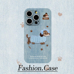 适用iPhone17ProMax牛仔底刺绣小狗苹果16/15磨砂14/13/12手机壳
