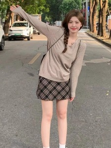 温柔软糯V领韩系针织打底衫女春秋冬季宽松内搭上衣复古百搭毛衣