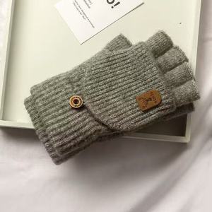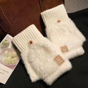 冬季加厚半指翻盖手套女可爱冬天骑行保暖针织学生可写字打字手套
