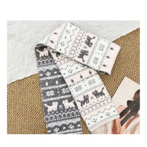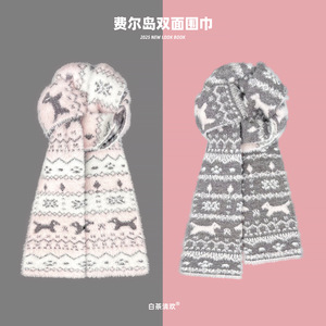 韩版费尔岛猫咪双面提花围巾秋冬新款温柔甜美氛围感保暖针织围脖