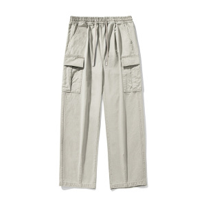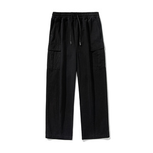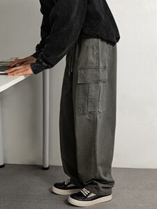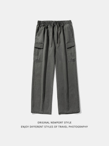 双立体口袋水洗做旧休闲裤春夏款直筒宽松质感斜纹纯棉工装长裤q