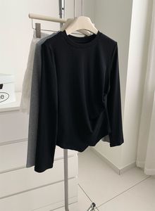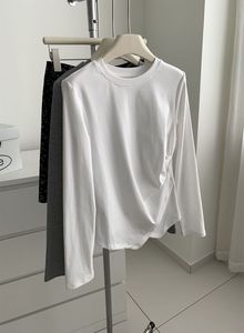 胖妹妹大码不规则下摆捏褶圆领长袖T恤女气质韩版显瘦秋冬打底潮