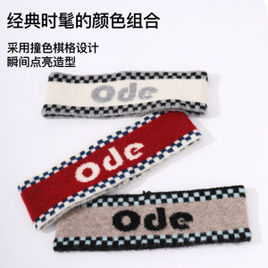 冬季潮酷棋格头带女户外运动街舞潮流头带男高弹力加绒保暖发带女