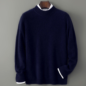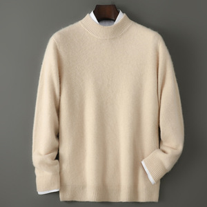 一线成衣100%纯羊毛衫男士半高领加厚商务套头毛衣宽松针织打底衫