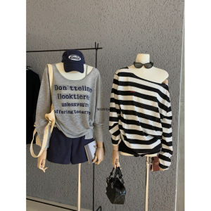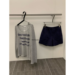 塞纳【WGWE】6993韩系慵懒chic两件套字母斜肩罩衫+休闲短裤套装