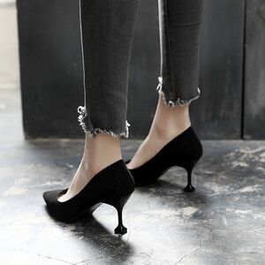 鞋子女学生韩版2025春秋新款女鞋尖头百搭黑色工作鞋女细跟高跟鞋