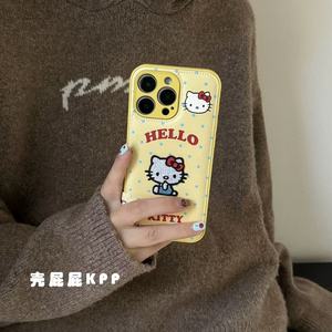 奶黄可爱波点刺绣KTins韩系17pro适用16pro苹果16ProMax手机壳14