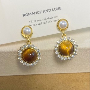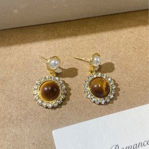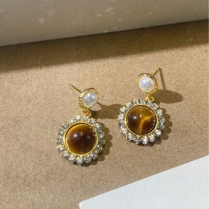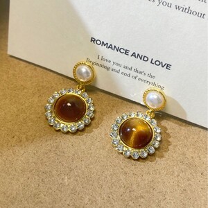 法式轻奢满钻虎眼石圆形珍珠耳环气质精致简约小众高级感耳钉耳饰