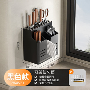 优雅黑刀架筷勺筒【壁挂台面两用】