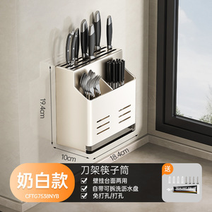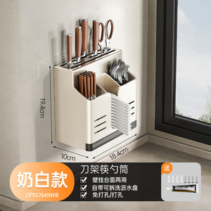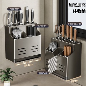 尔沫多功能筷子收纳盒刀架一体式收纳厨房置物架壁挂式勺子桶筷笼