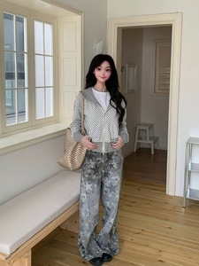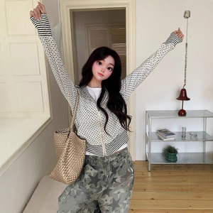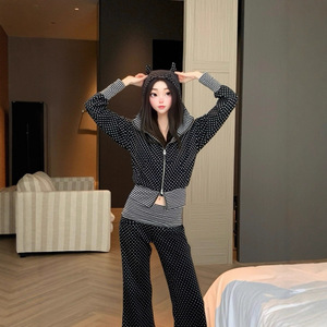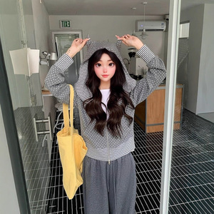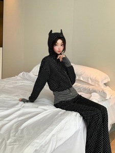 【明星同款】双拉头小波点恶魔角连帽卫衣短款外套