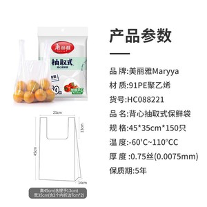 美丽雅保鲜袋食品级家用背心式密封袋一次性分装袋冰箱专用塑封袋