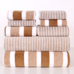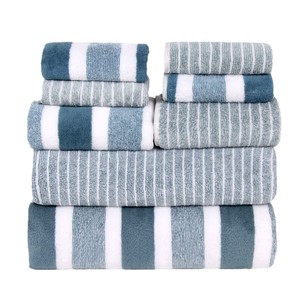 跨境 珊瑚绒大浴巾宽条纹柔软吸水八件套不掉色速干柔软浴巾套巾