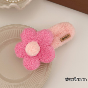 秋冬大号花朵毛绒发夹女后脑勺盘发鸭嘴夹子甜美可爱抓夹发卡头饰