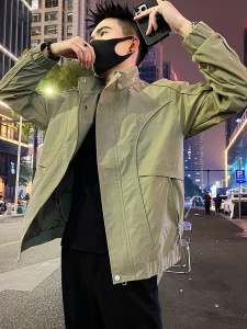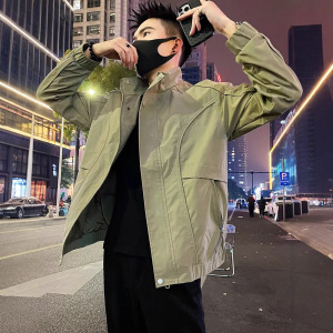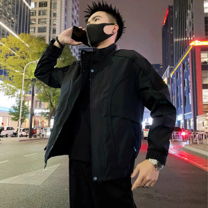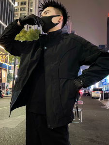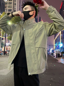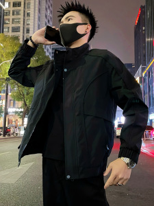 男士商务休闲夹克黑色立领男装上衣褂子2025秋冬新款潮牌工装外套