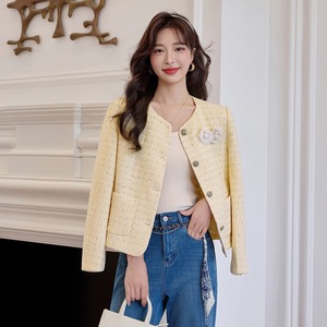 小香风短款外套女法式名媛春秋2025新款气质圆领显瘦轻奢黄色上衣