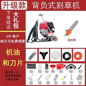 五洲本田-升级款g~防水四冲程背负式+锄草轮+高枝锯+礼包