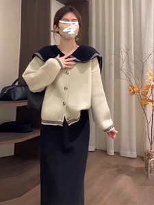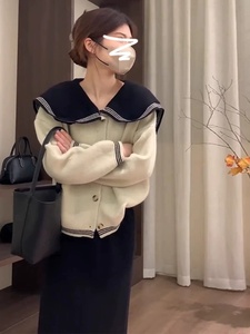 海军领毛衣针织开衫外套女秋冬季2025新款气质奶系慵懒风显瘦上衣