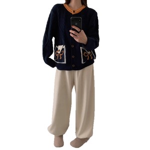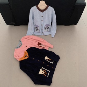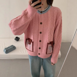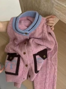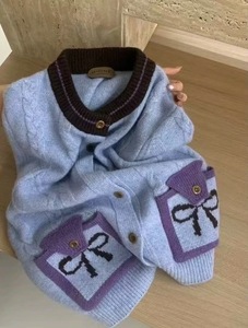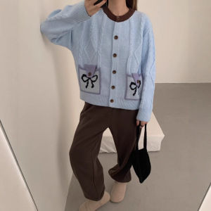 蝴蝶结麻花毛衣撞色开衫女秋冬2025新款复古软糯慵懒风针织外套潮