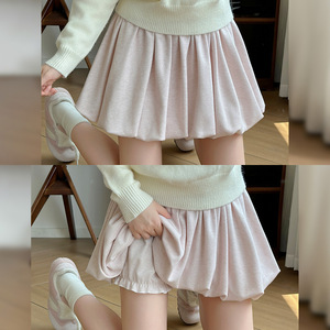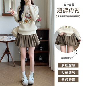 咖色半身百褶裙女花苞裙2025秋季新款高腰裙裤显瘦百搭糯米A字短