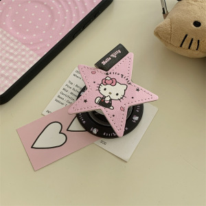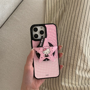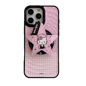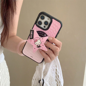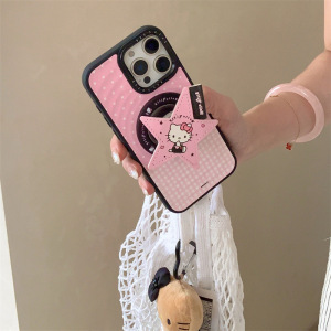 磁吸-粉底波点拼接格纹 壳+星星凯蒂猫支架