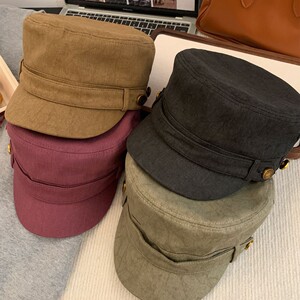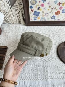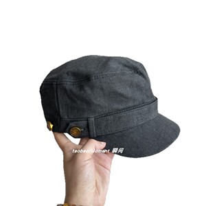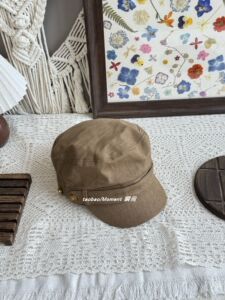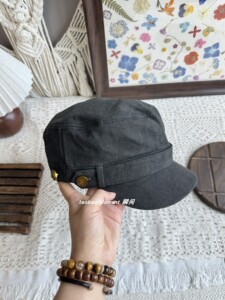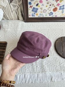 复古纽扣平顶马术帽气质风韩系古着感显脸小鸭舌帽做旧原宿八角帽