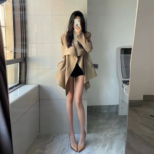 2025春秋中长款学生英伦风衣女小个子落肩设计感西装外套潮雪尼尔