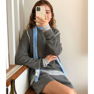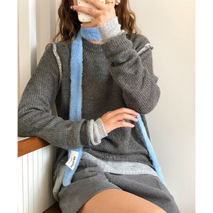 跨境时髦细围巾女叠戴y2k长条围巾辣妹穿搭毛绒围巾韩国窄围脖女