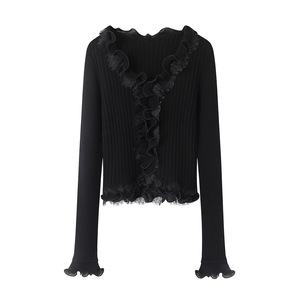 2025秋季新款女装木耳边装饰蕾丝刺绣花毛针织开衫上衣RL90601412