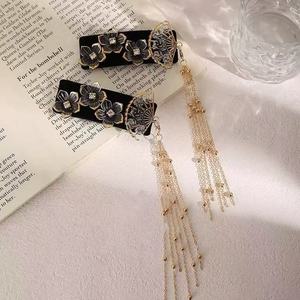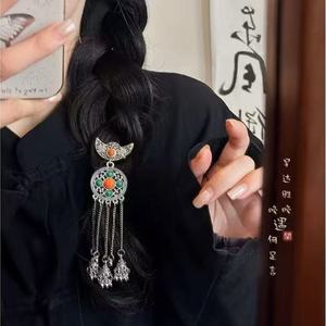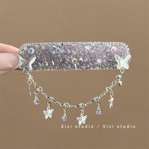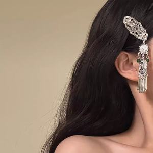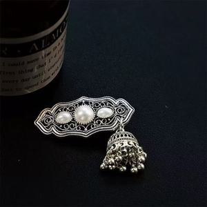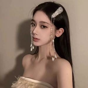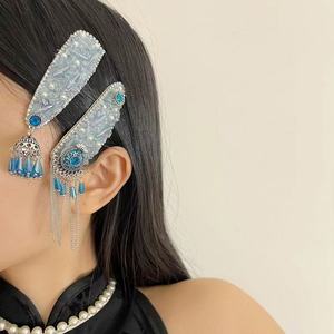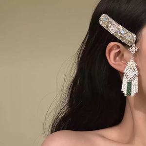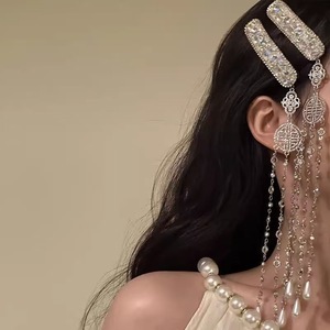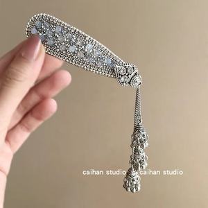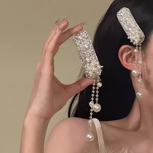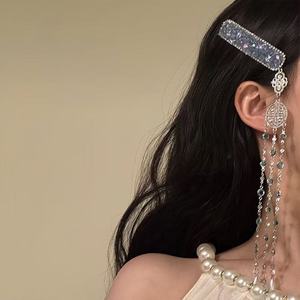 民族风治愈系闪钻珍珠名族风前额流苏边夹女个性刘海夹发卡发饰