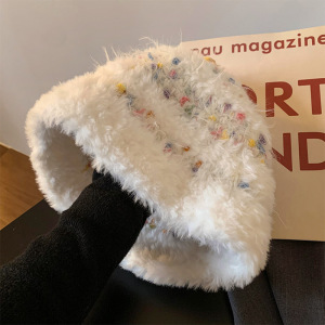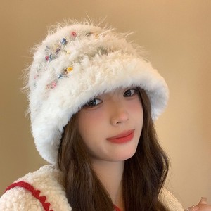 彩色小糖豆毛绒渔夫帽女秋冬季显脸小百搭毛线帽大头围帽子水桶帽