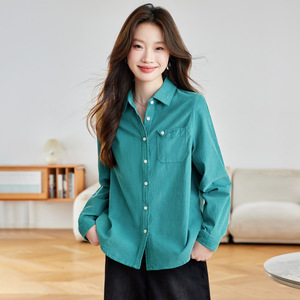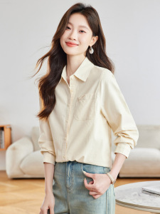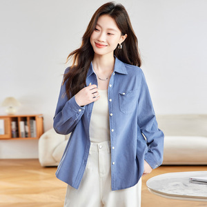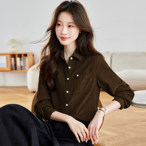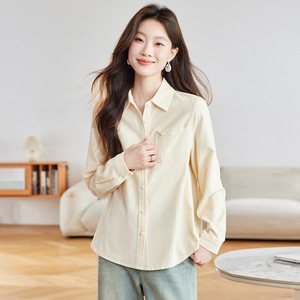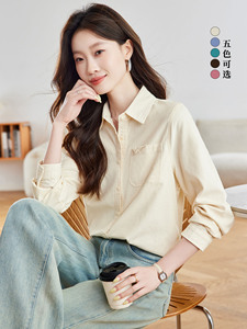 棉茧 磨毛长袖衬衫女装秋季新款通勤风翻领口袋折角多色休闲衬衣