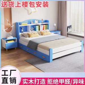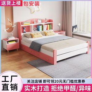 实木床男童1.5储物双人床1.8米主卧儿童青少年单人床1米女孩公主
