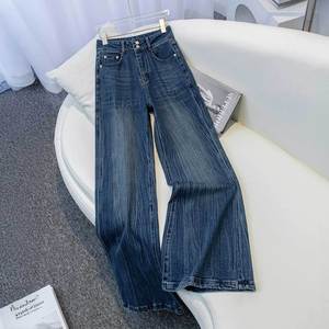 2025年早秋新款高腰阔腿牛仔裤女高腰小个子显瘦显高宽松直筒裤