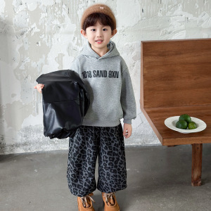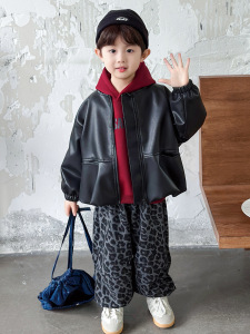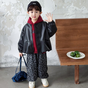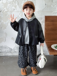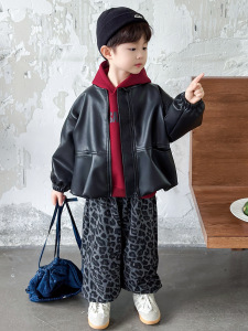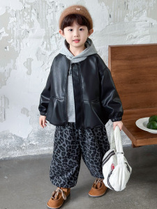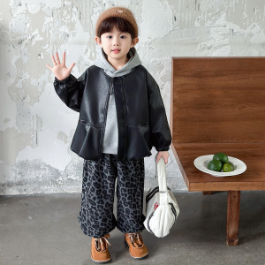 儿童装春秋季套装2025新款男童帅气时髦皮马甲三件套男孩宝宝卫衣