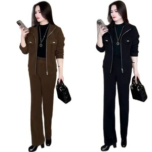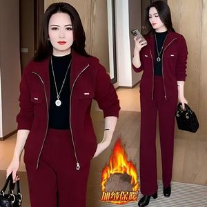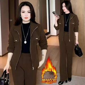 秋冬季新款时尚穿搭气质休闲运动宽松显瘦加绒加厚两件套女装套装