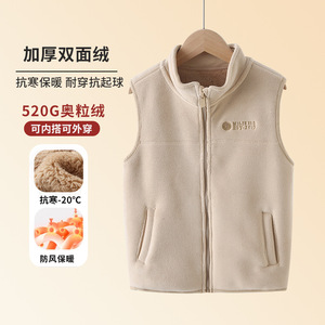男童马甲儿童摇粒绒加绒马夹保暖新款女童外穿背心冬季校服神器内