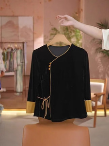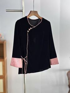 2025春秋新款新中式国风真丝丝绒小衫百搭洋气上衣