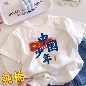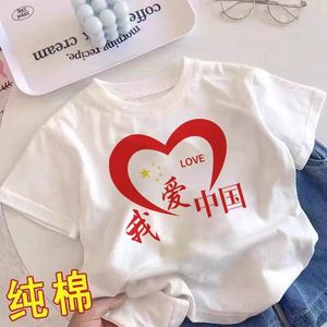 国庆新款儿童纯棉国潮爱我中国打底衫男女童夏季短袖T恤宝宝上衣