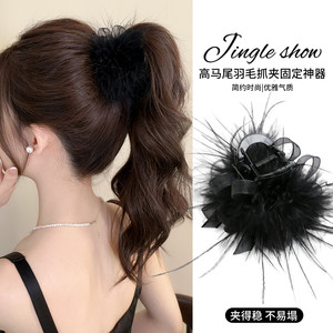 高马尾固定神器黑色羽毛抓夹女高级感2025新款发夹后脑勺鲨鱼夹子