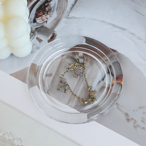 ins风简约珠点透明玻璃烛台盘摆件首饰收纳盘香薰蜡烛托盘蜡烛碟
