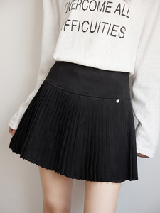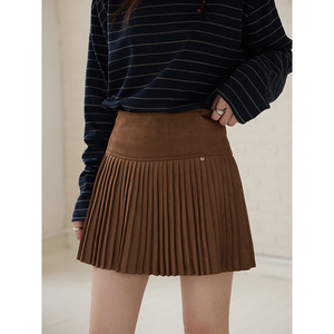 【miu系细褶裙】歌铭复古仿麂皮绒短裙女秋季新款百褶半身裙N618C