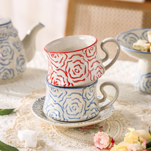 复古风咖啡杯碟家用陶瓷拿铁杯子 高颜值ins风手绘下午茶杯盘餐具