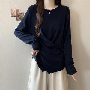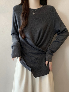 灰色T恤【港味chic上衣/别致漂亮/减龄穿搭/设计感小众/内搭打底衫/法式复古长袖/宽松/炸街轻奢