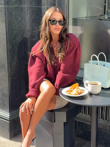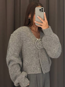时尚气质优雅纯色立体花饰毛衣开衫上衣女2025秋冬新款跨境欧美风