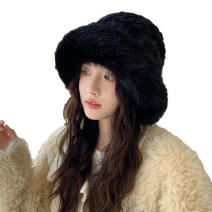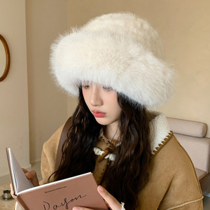冬季时尚仿皮草毛绒帽子女户外休闲加厚防寒保暖帽日系包头盆帽新