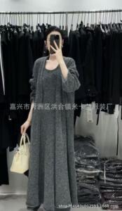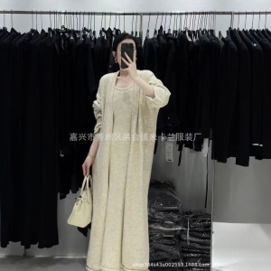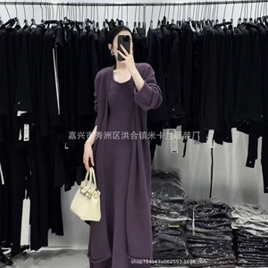 高品高克重绵羊绒纯色两件套2025新款时尚百搭气质针织开衫连衣裙