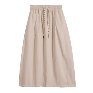 米白色工装半身裙女2025秋季新款高腰蓬松南瓜裙a字显瘦中长裙