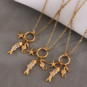 方糖 不锈钢小鱼吊坠项链 镀18k真金时尚百搭海洋沙滩度假风首饰