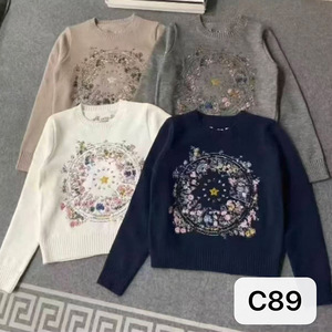轻奢香风重工刺绣花朵圆领长袖针织衫秋冬套头毛衣高级感减龄上衣